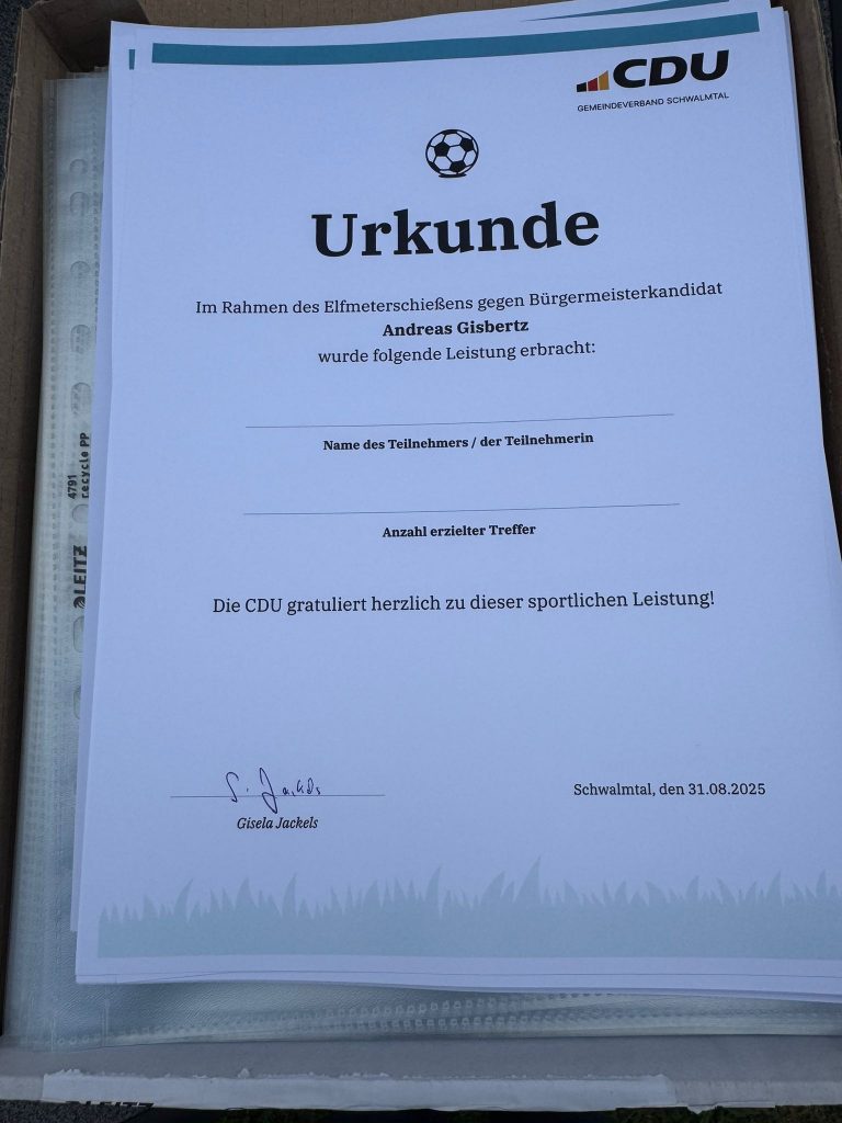⚽ Fußball-Dart XXL & Torwandschießen gegen Bürgermeister Andreas Gisbertz – so beliebt, dass er gleich drei Runden ins Tor musste! Alle Kids nahmen stolz ihre Urkunden mit nach Hause.